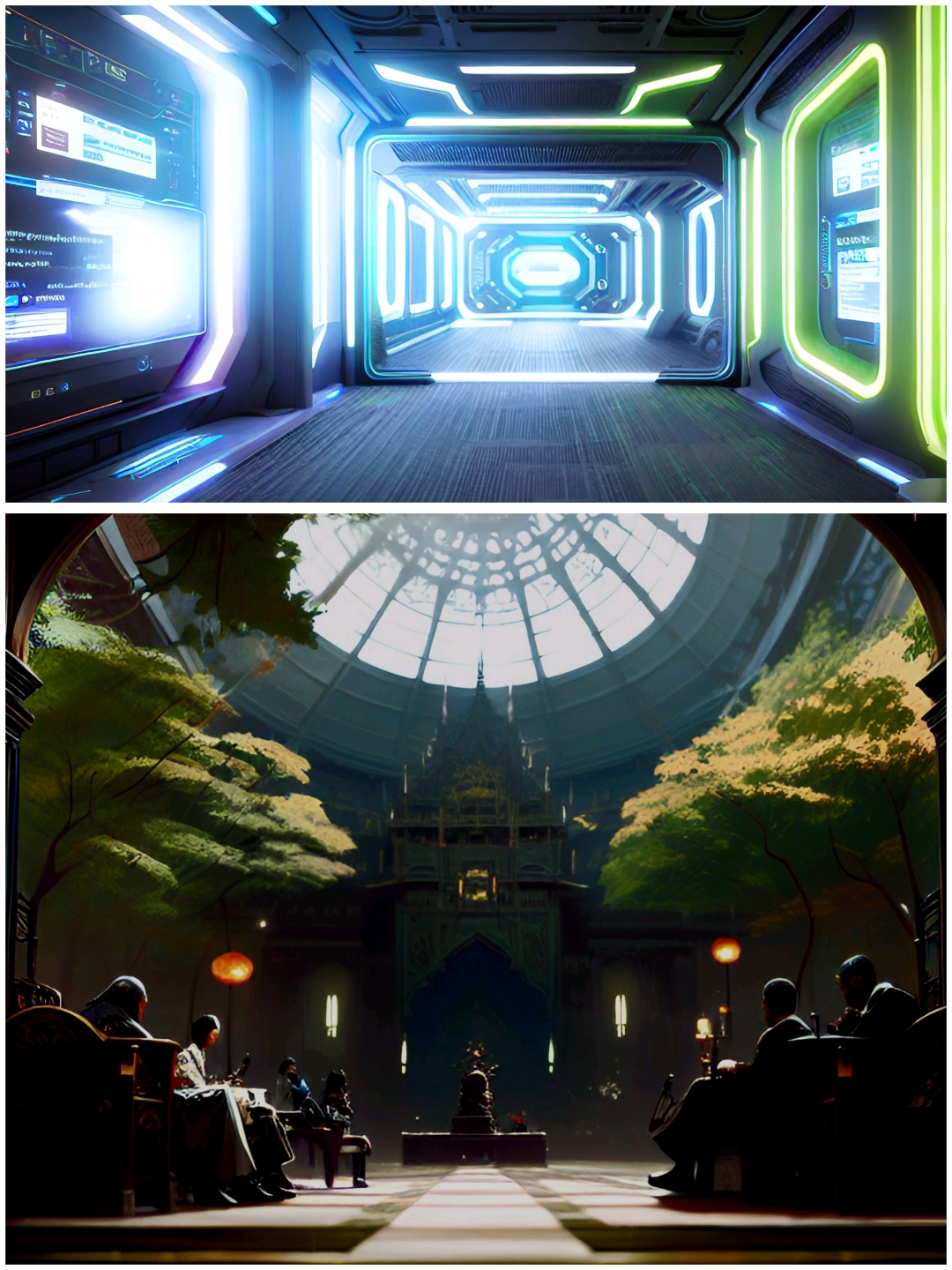 Passing one last section, we reached the central hall of the building, where the Council members had gathered waiting for our arrival. In the half-light of the hall, I could make out six silhouettes sitting on benches arranged in a semicircle.
