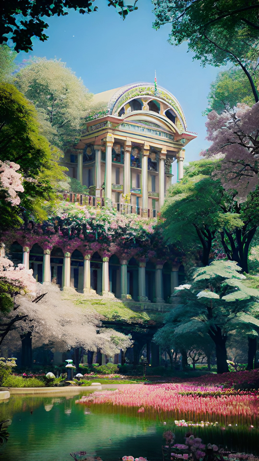 We were escorted by the Civic Police to the Ethics Council building. This is probably the most beautiful area of Alma Mater: a park of impressive size, where thousands of rare plants from all over the planet bloom incessantly, all year round, and in the midst of which stands a most elegant marble palace, built according to the criteria of ancient Indian Vedic architecture.